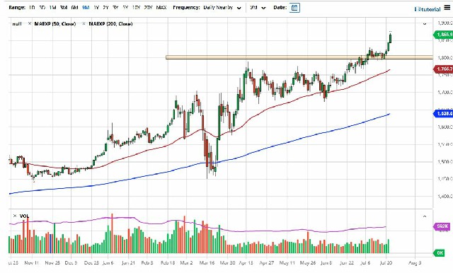 تقدمت أسواق الذهب خلال تداولات الأربعاء، حيث قمنا بالاختراق فوق المستوى 1850 دولار. عند هذه النقطة، من المحتمل أن يشهد السوق الكثير من المشترين عند التراجعات، حيث أننا قمنا بالتأكيد بالاختراق للأعلى. يتعرض الدولار الأمريكي للضغط، وبالتالي جعل هذا الأمر الذهب جذاباً بالنسبة للكثير من المتداولين، حيث أننا في اتجاه صعودي طويل الأجل. إلى الأسفل، كان المستوى 1800 دولار يقدم الكثير من المقاومة، ومن المفترض أن يقدم الآن الكثير من الدعم. بالإضافة إلى ذلك، فهو رقم مهم من الناحية النفسية، وبالتالي سوف يركز عليه الكثير من المتداولين. بالإضافة إلى ذلك، يقع المتوسط المتحرك لـ50 يوماً ما دون المستوى 1800 دولار وسوف يقدم الكثير من الدعم كذلك، وربما حتى أن يقدم علامة هامة بالنسبة للاتجاه